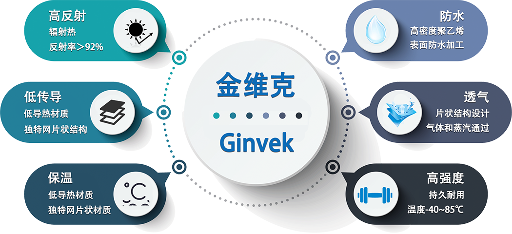 在外部環(huán)境,尤其是夏季高溫環(huán)境中,太陽(yáng)輻射熱才是建筑物及其內(nèi)部溫度升高的主要來源。利用金維克材料對(duì)農(nóng)場(chǎng)建筑進(jìn)行防護(hù)(屋頂,側(cè)墻等),能夠極大降低太陽(yáng)輻射熱帶來的溫度影響,切斷升溫主要來源,從而減緩室內(nèi)溫度的上升,為生物提供事宜的環(huán)境溫度,同時(shí),利用金維克材料的紫外反射特性及一定的阻水能力,還可以改善老舊建筑容易吸熱,吸水等缺陷,進(jìn)一步給養(yǎng)殖環(huán)境提供可靠的“防護(hù)屏障”。